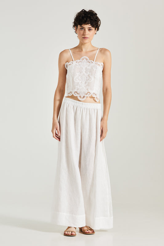 Linen Blouse With Open Back And Lace Details